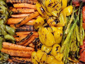 Marinated grilled seasonal vegetables. An assortment of vegetables will be chosen by our kitchen from the week's market fresh vegetables.